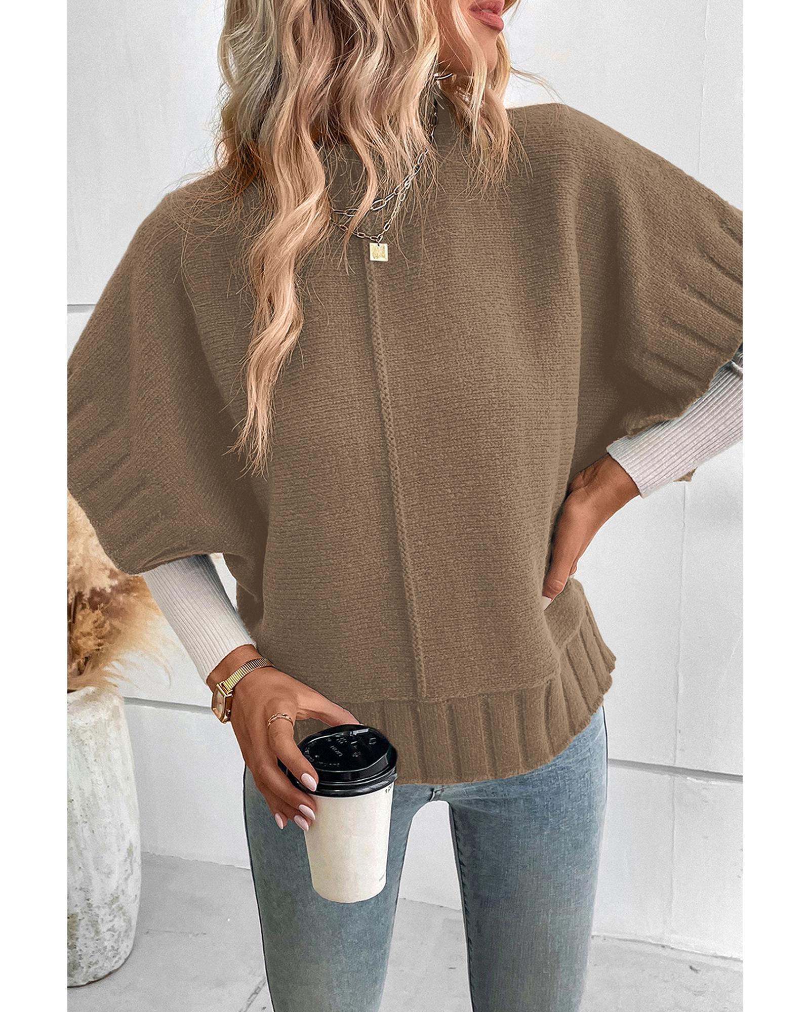 Desert Palm Mock Neck Batwing Short Sleeve Knit Sweater – XL