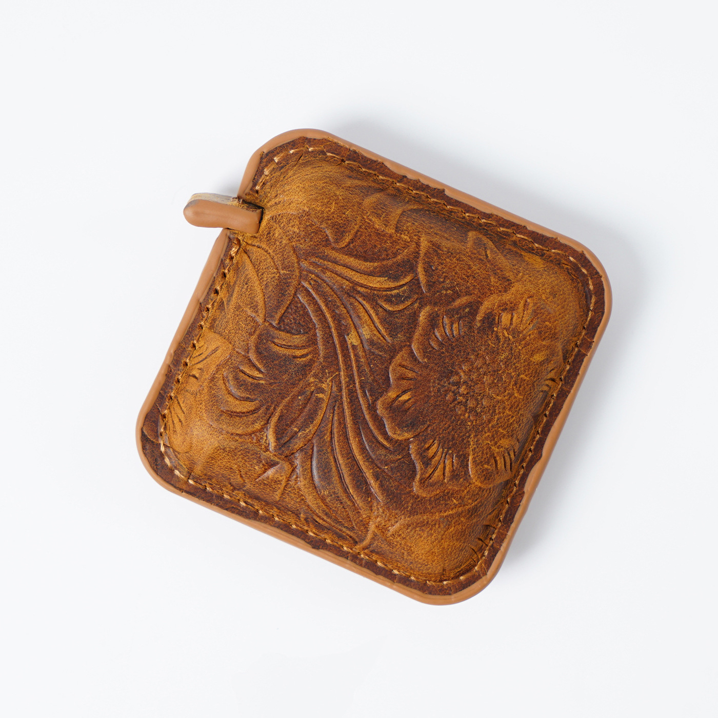 Yellow Brown Mini Leather Tape Measure – 1.5m/60in – Square With Pattern