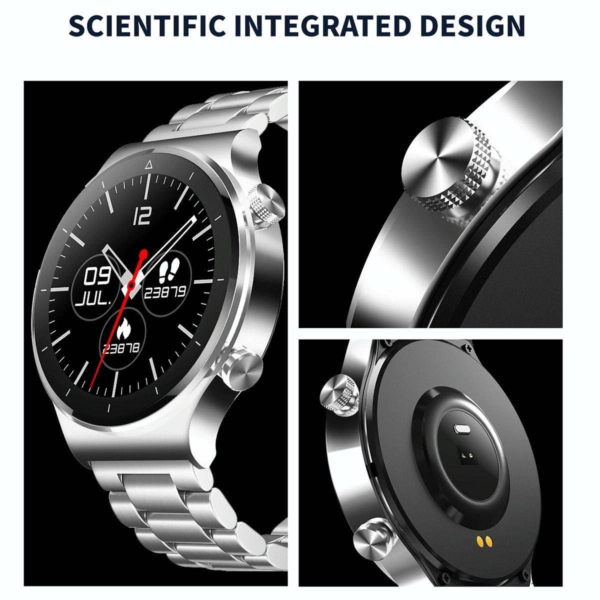 • Functions: Bluetooth Voice Call, Call Dialing, Communication Rate Synchronization, Call Record Query, Call Record, Message Reminder, Time Display, Record Steps, Calories, Movement Distance, Raise your Hand and Light the Screen, Sleep Monitoring, Running Track, Call Reminder, Sedentary Reminder, Alarm Clock, Music Control, Music Playback, Remote Control Photography, Find Mobile Phone, Water Reminder, Do not Disturb Mode, Dial Interface Switching, Whole Point Measurement, Heart Rate Test, Blood Oxygen Test, Blood Pressure Test, Body Temperature Test, Brightness Adjustment, Stopwatch, Countdown, Apple Health