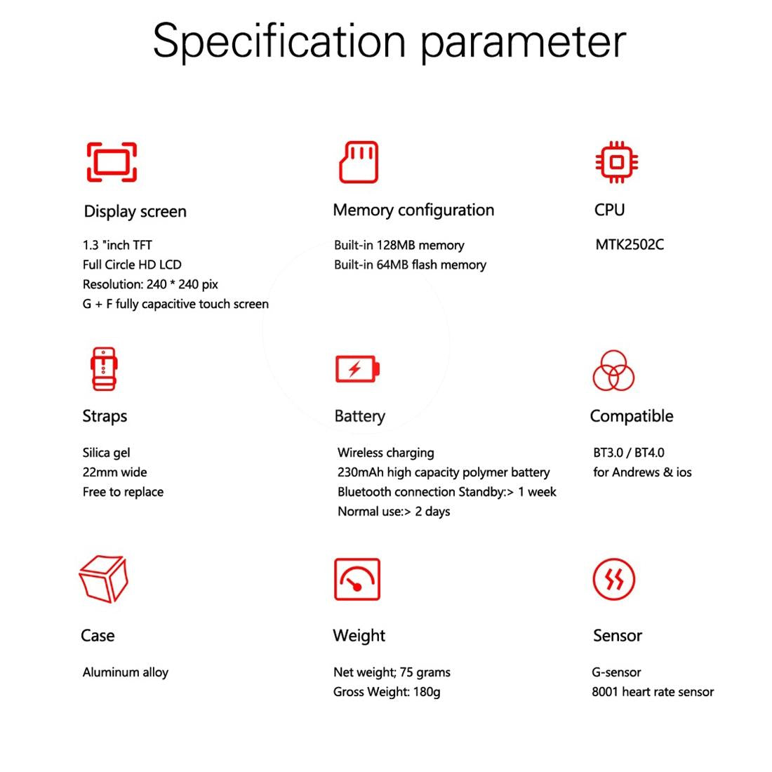 • 1 x 1.3 Inch Tft Screen Mtk2502C Bluetooth4.0 Silicone Watch Band Support Heart Rate Monitor Pedometer Sleep Monitor Sedentary Reminder
