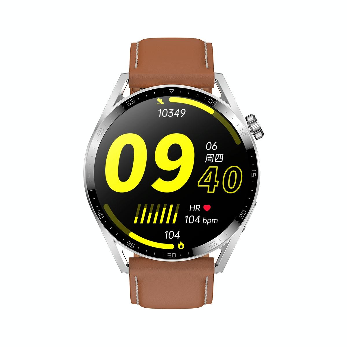 1.36 Inch Round Screen Bluetooth Smart Watch With Leather Strap – Silver