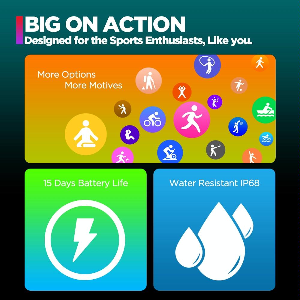 • Sport Modes: Choose from a variety of sport modes including outdoor running, cycling, jumping jack, skipping, badminton, table tennis, tennis, alpinism, walking, basketball, football, baseball, cricket, volleyball, hockey, rugby, dancing, yoga, spinning bike, sit-ups, indoor running, boating, gymnastics, and swimming.