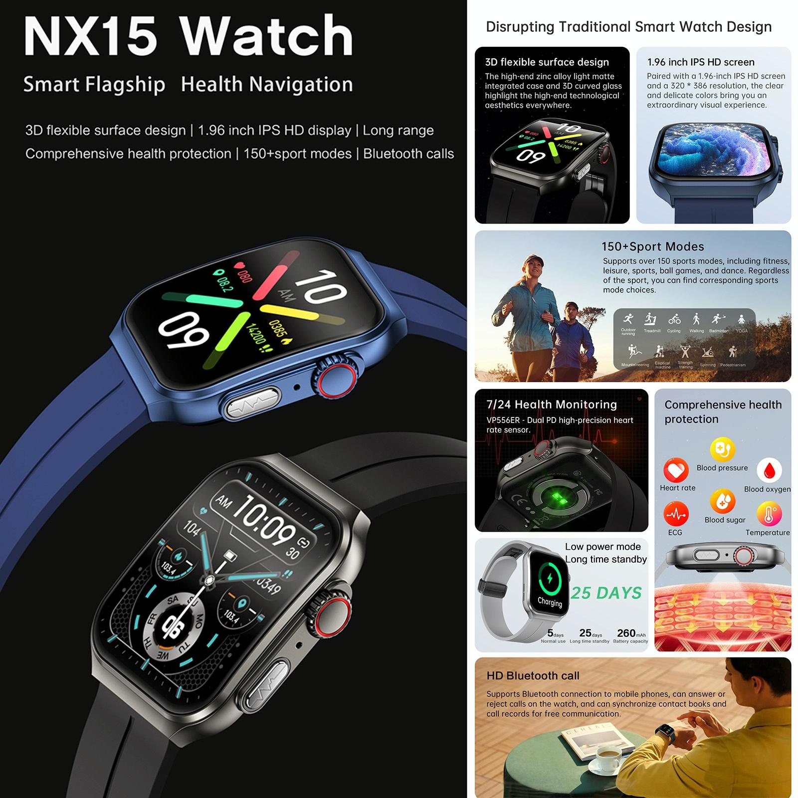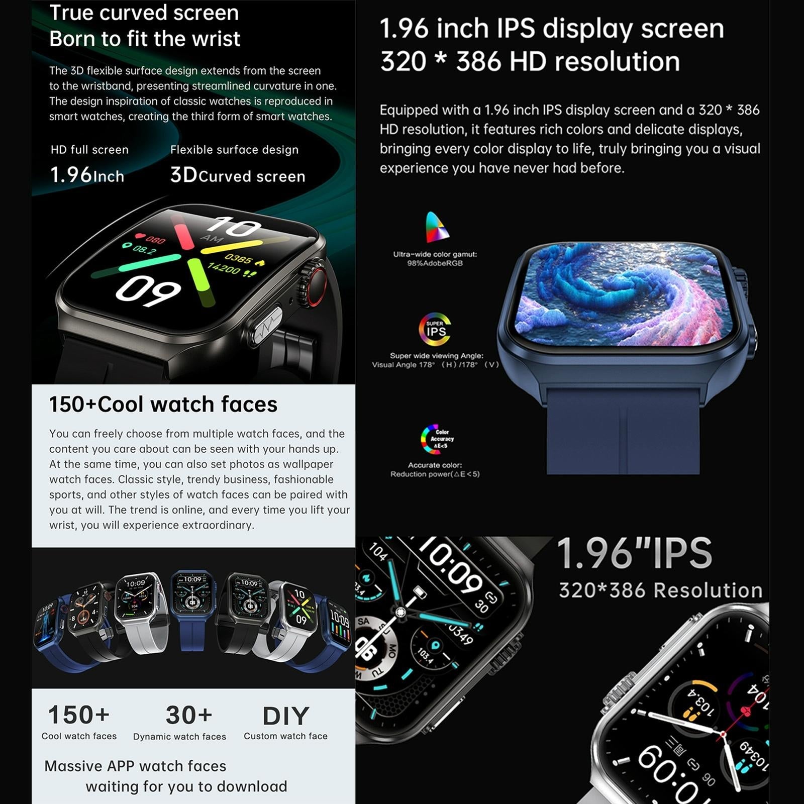 • 1 x 1.96 Inch Bt Call / Heart Rate / Blood Pressure / Blood Oxygen