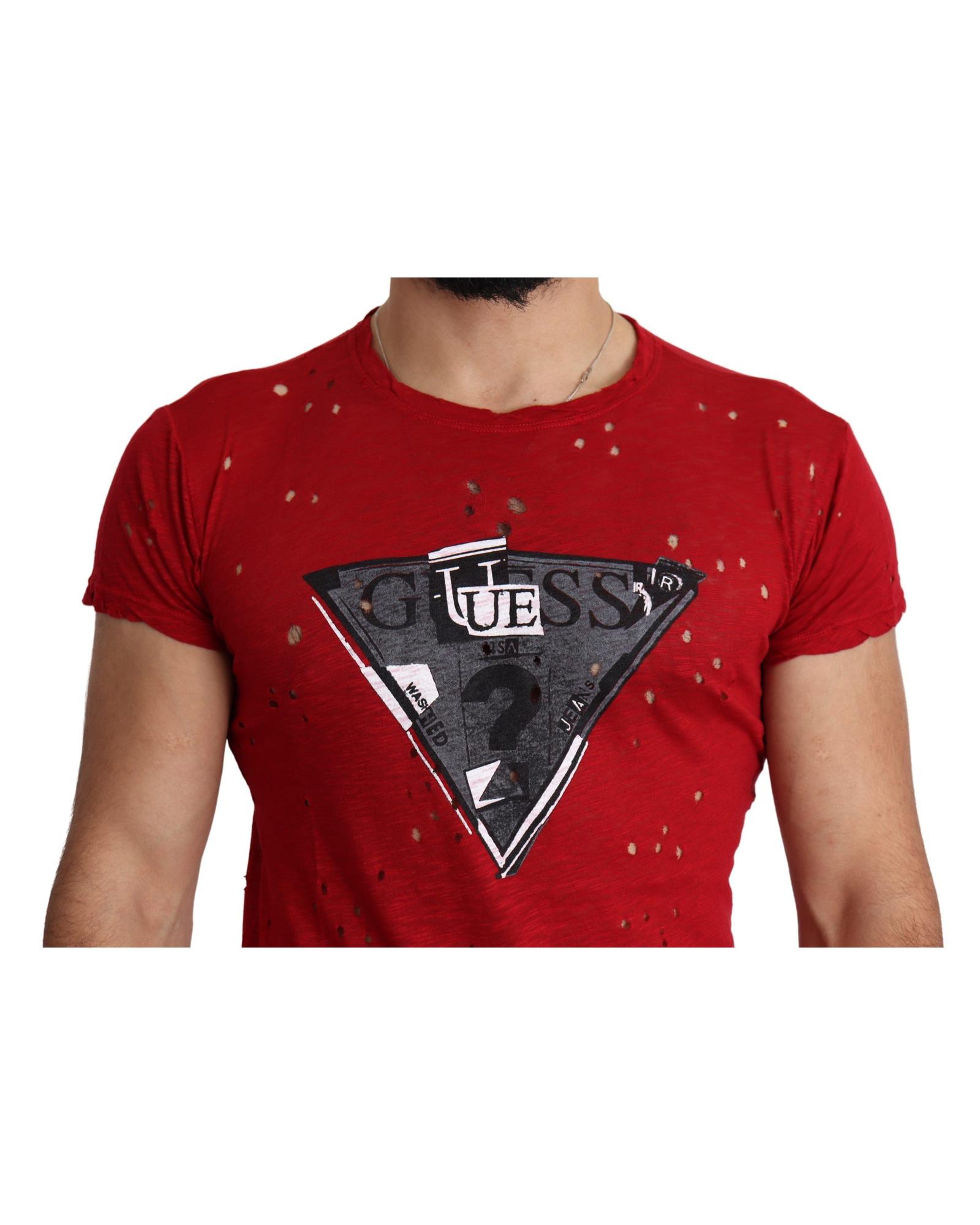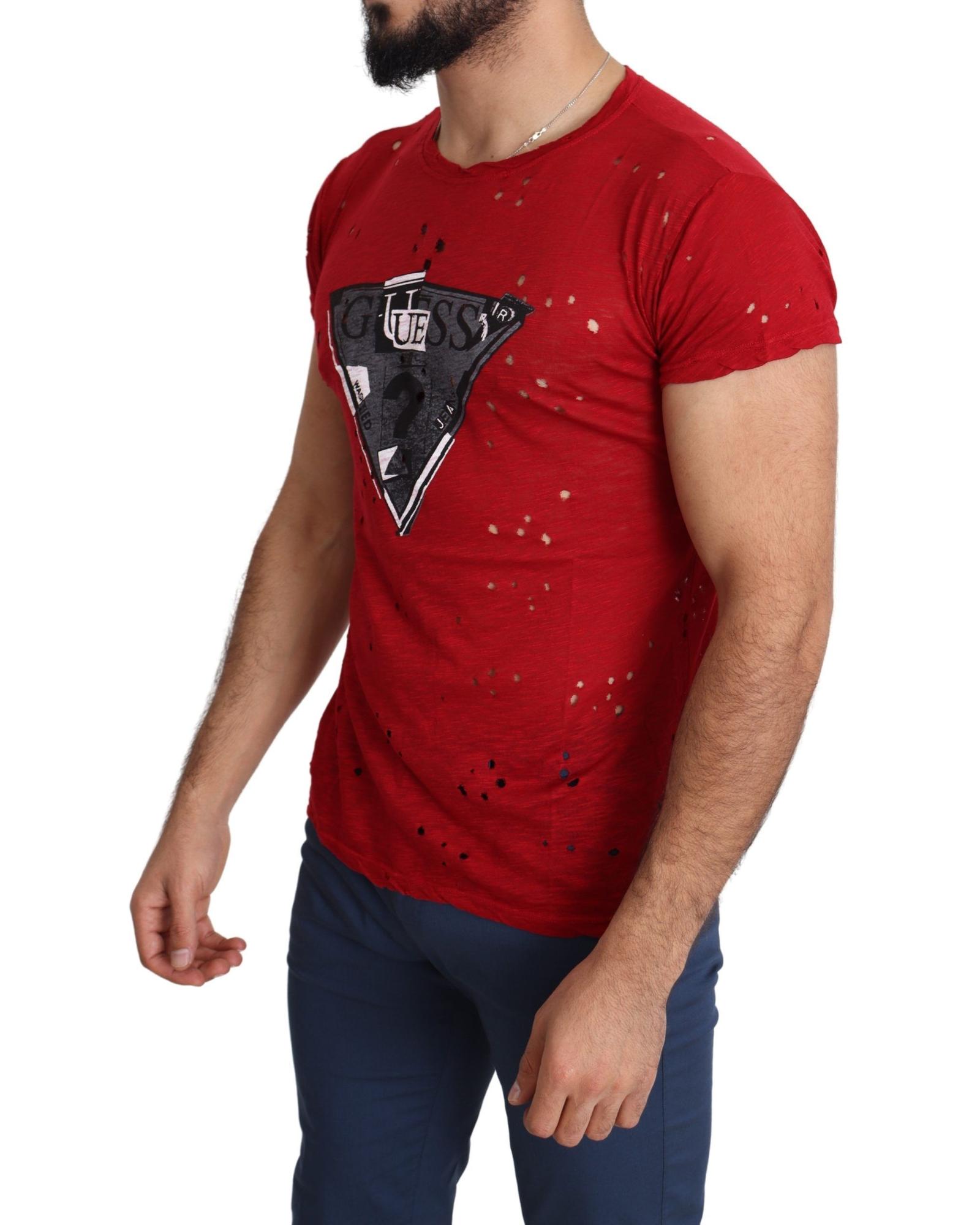 100% Authentic Red Cotton Stretch T-Shirt with Round Neck and Short Sleeves M Men