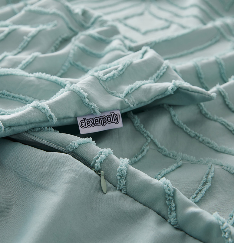 100% Premium Tufted Microfibre Quilt Cover Set – Ultra-Soft, Durable Embroidery Bedding Comforter Set – Machine Washable & Zipper Closure – Sage Green – King