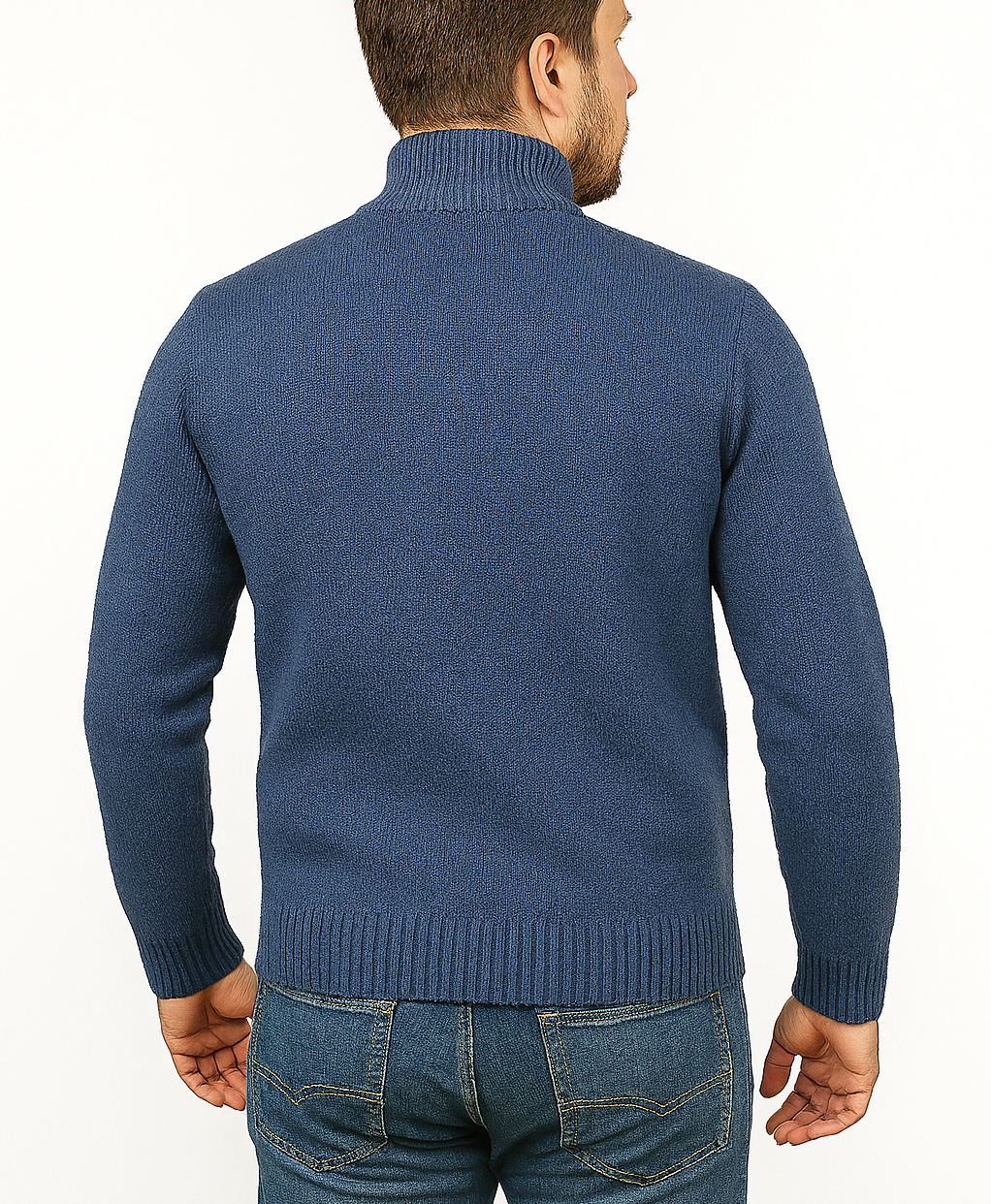 100% SHETLAND RAGG WOOL Half Zip Up Knit JUMPER Pullover Mens Sweater Knitted in Sky - M Original price was: $95.99.Current price is: $51.99.