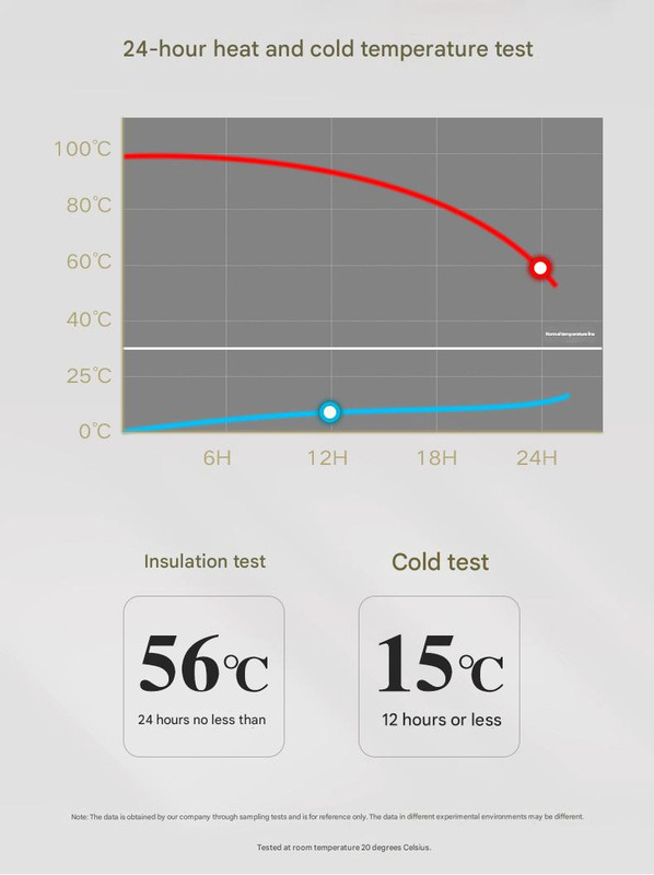 - Insulation: 24-hour heat retention (56 degrees Celsius), 12-hour cold retention (15 degrees Celsius)