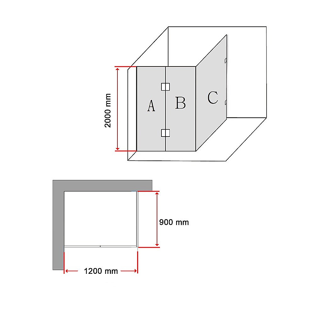 1200 x 900mm Frameless 10mm Glass Shower Screen By Della Francesca