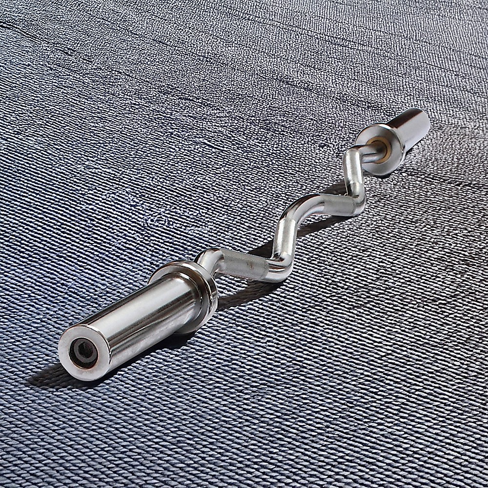 This chrome curl bar is 120cm (47) in length and accepts Olympic-style weights (not included) up to a total of 150kg. With your proper form, the design of this bar isolates the biceps as well as the forearms for an intense upper arm workout. It's a solid piece of hardware that weighs 8.2kg (18 lbs).