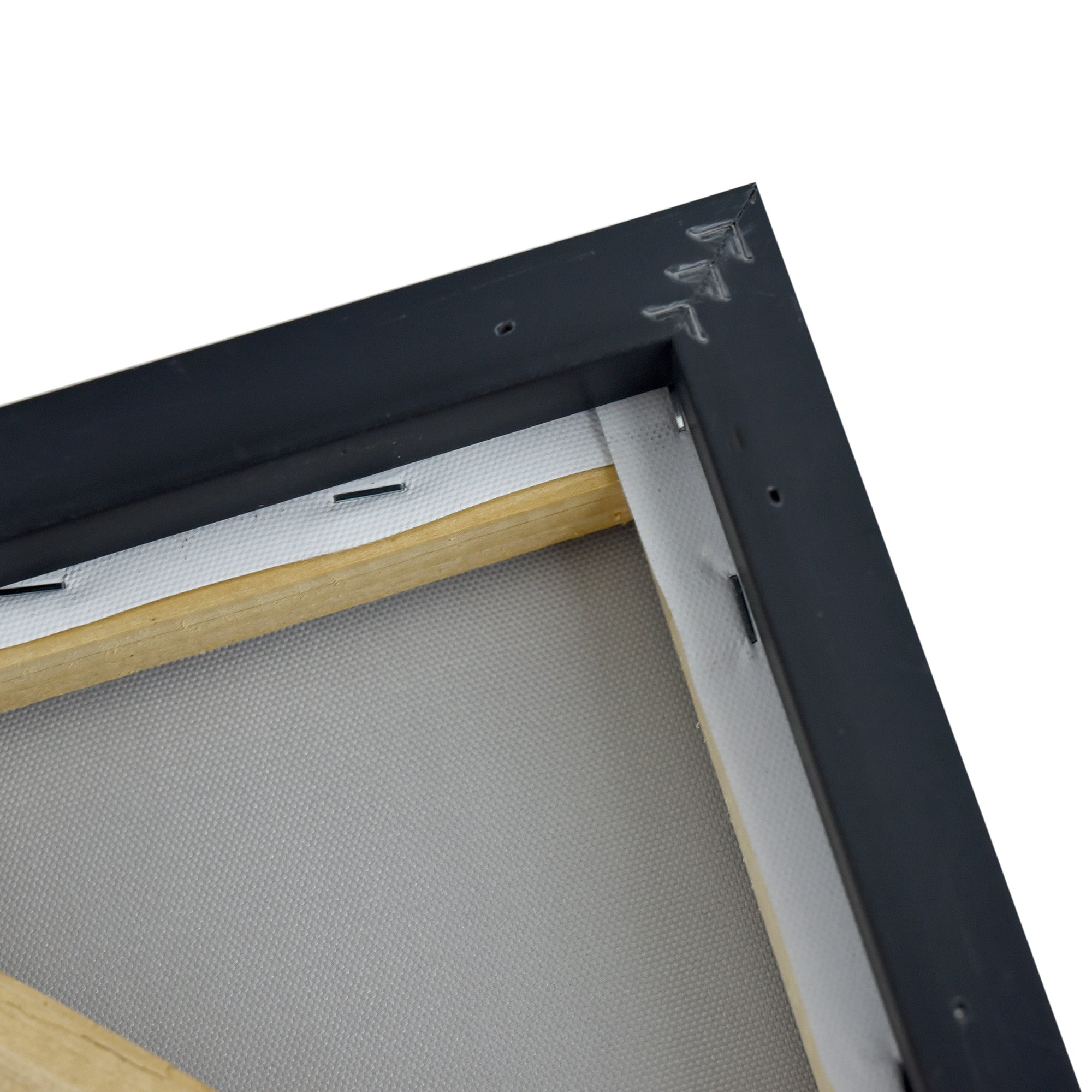 Stretched and gallery wrapped around a wooden stretcher and finished with a floating frame. There is a gap between the frame and print, which creates the floating effect and literally makes the canvas print stand out even more.