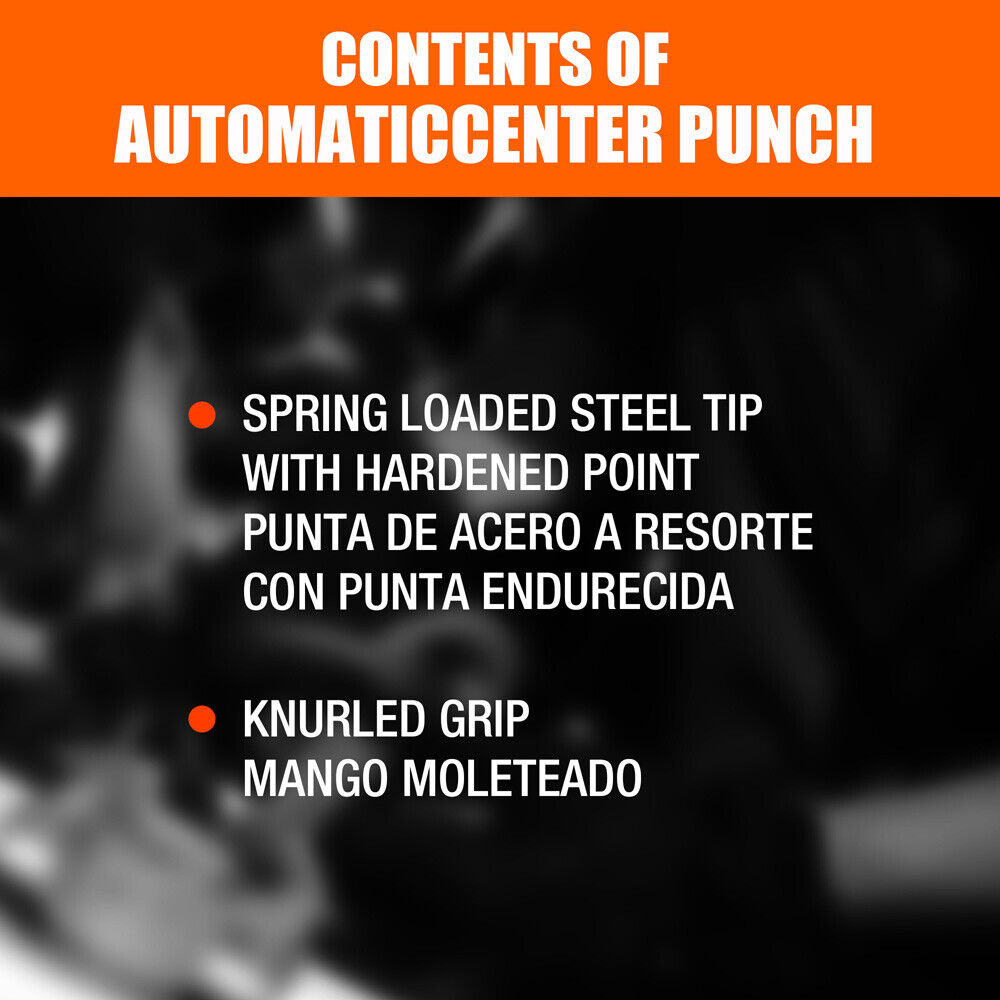 - Automatic spring loads then releases at top of cycle with force to create center punch(No Hammer Needed).