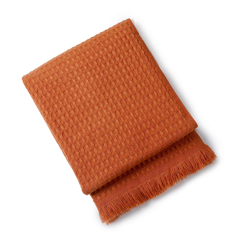 • Stylish Design: Waffle weave pattern with fringed edges adds sophistication.