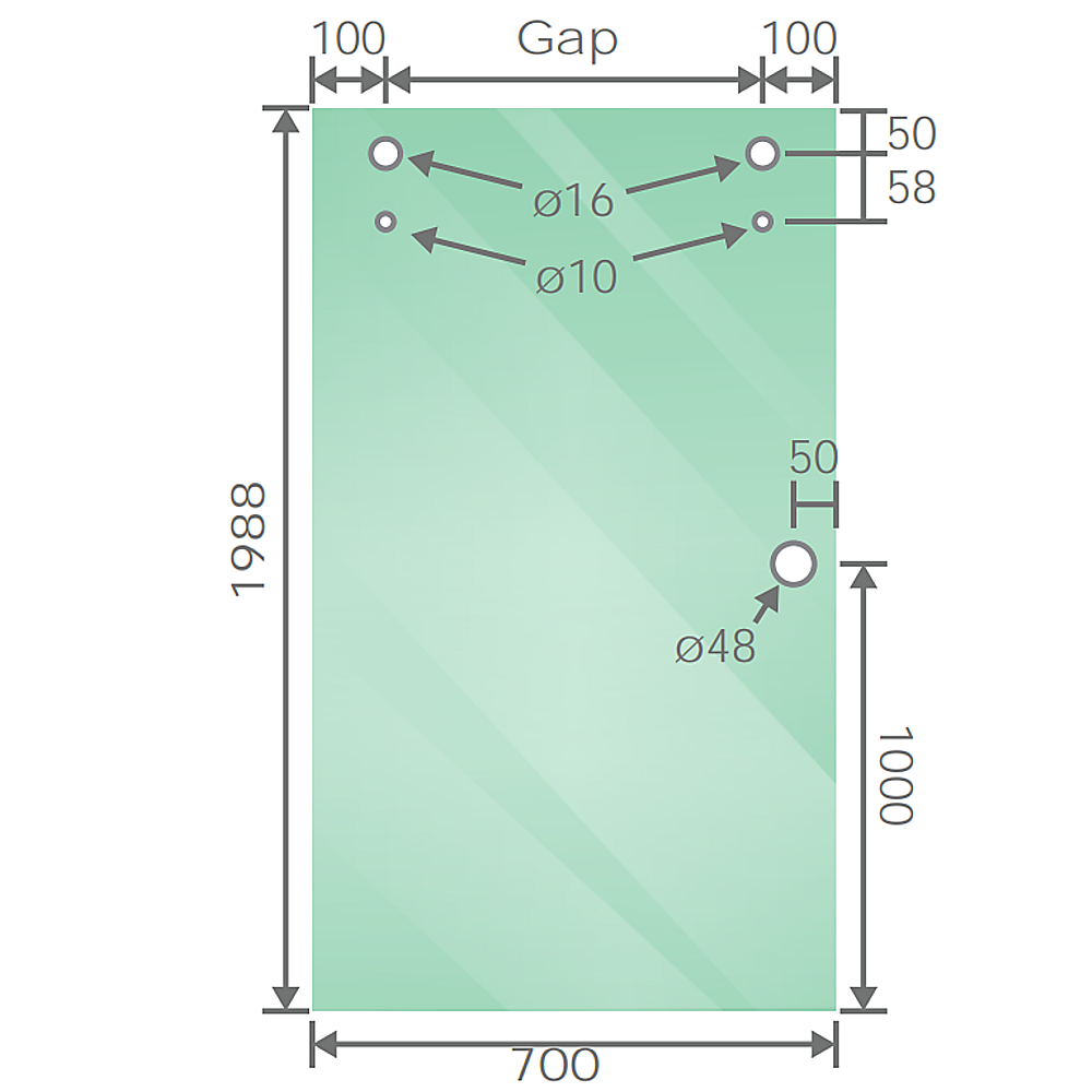 - 1 x Fixed panel: 650 x 2000mm