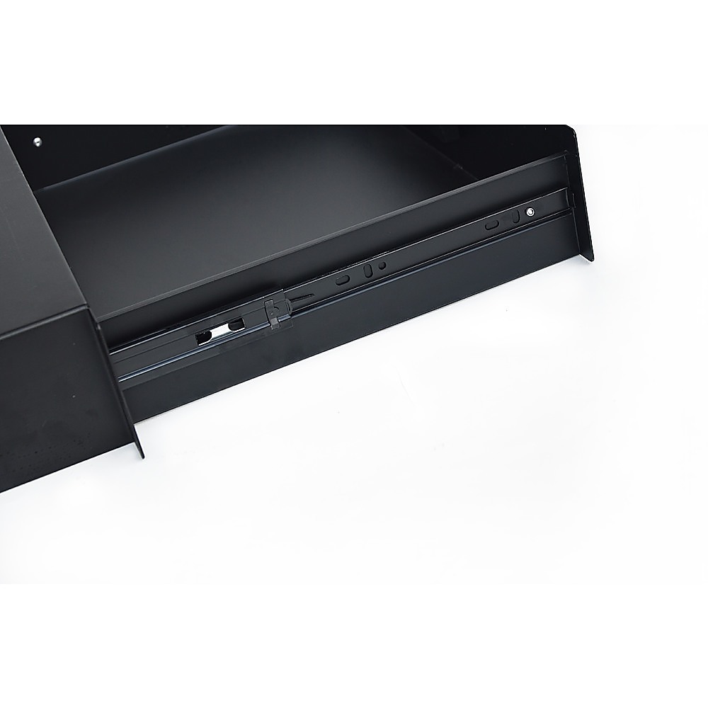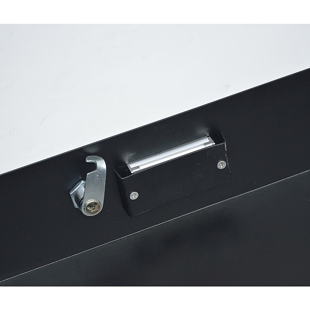 The 2U rack space is made from steel plates. While it is lightweight, it's a durable metal that creates a sturdy base for your equipment. The drawer can be locked with the key provided, which offers a secure storage option for you. You can lock the cabinet and leave your valuable contents inside, safe in the knowledge that no one but you can access them.