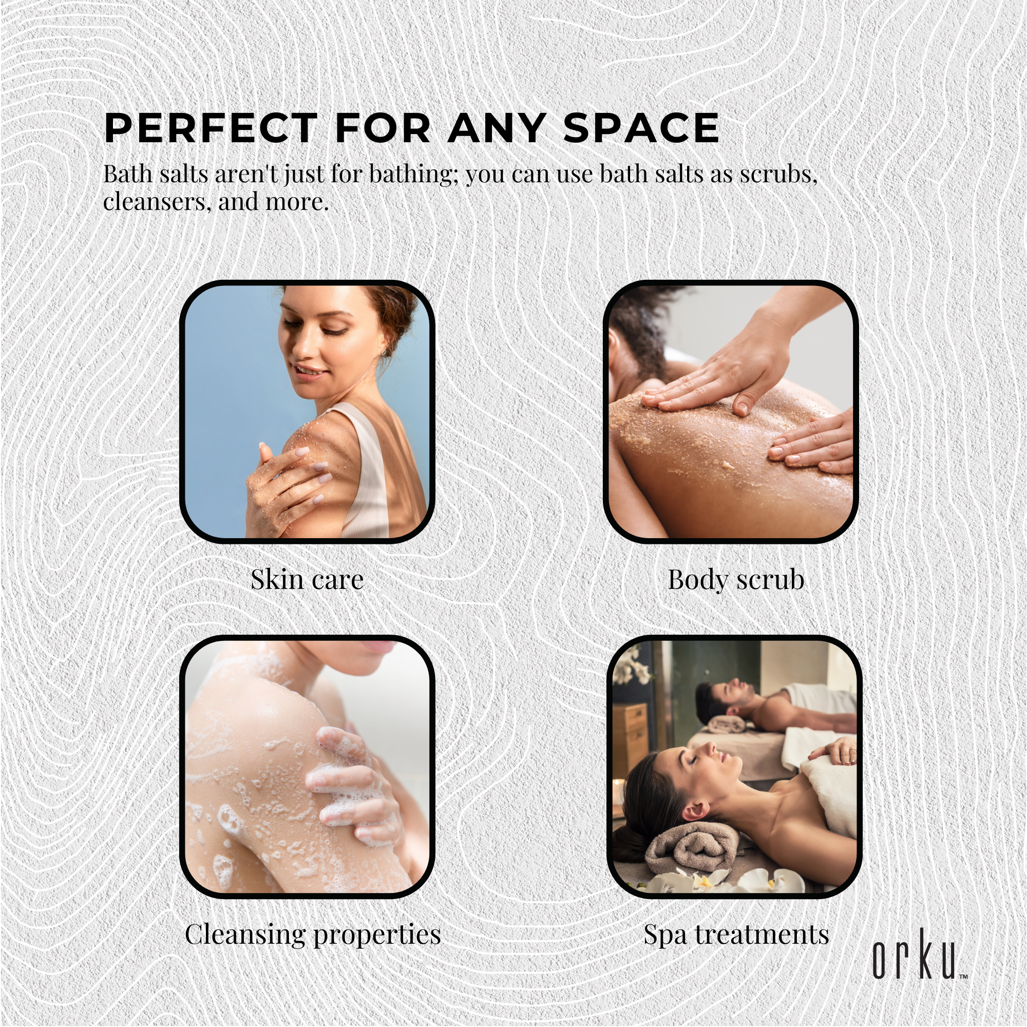 Bath salts for skin care, body scrub or therapy detox, among others, when used in their natural, pure form, contain many beneficial minerals and nutrients that may keep your skin smooth, soft, and supple. Some of the minerals found in bath salts include magnesium, potassium, calcium, bromide, and of course, sodium. Bath salts are water-soluble, pulverized mineral that are added to water to be used for bathing. They are said to improve cleaning, enhance the enjoyment of bathing, and serve as a vehicle for cosmetic agents.