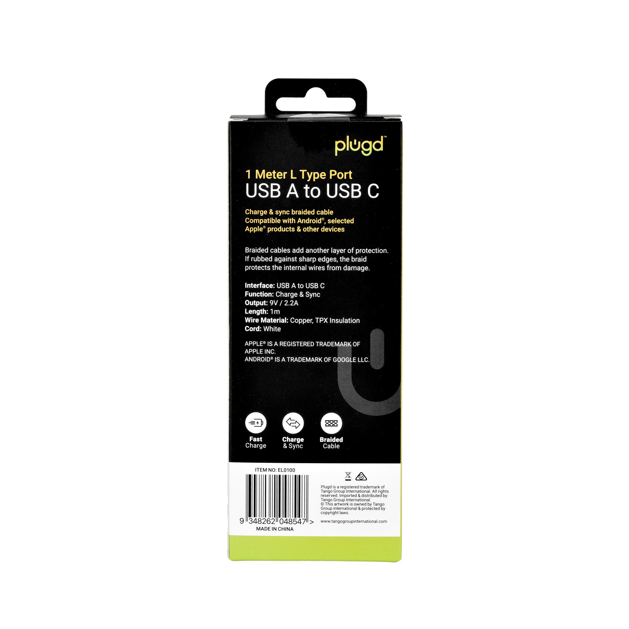 1M USB A to USB C Right Angle 90 Degree L Shape Fast Charging Cable