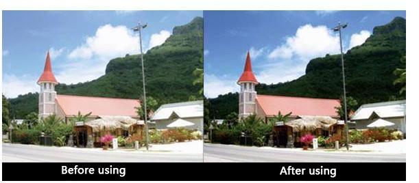 • Using the filter, the colours shall become brighter and clearer and the contrast shall be strengthened.