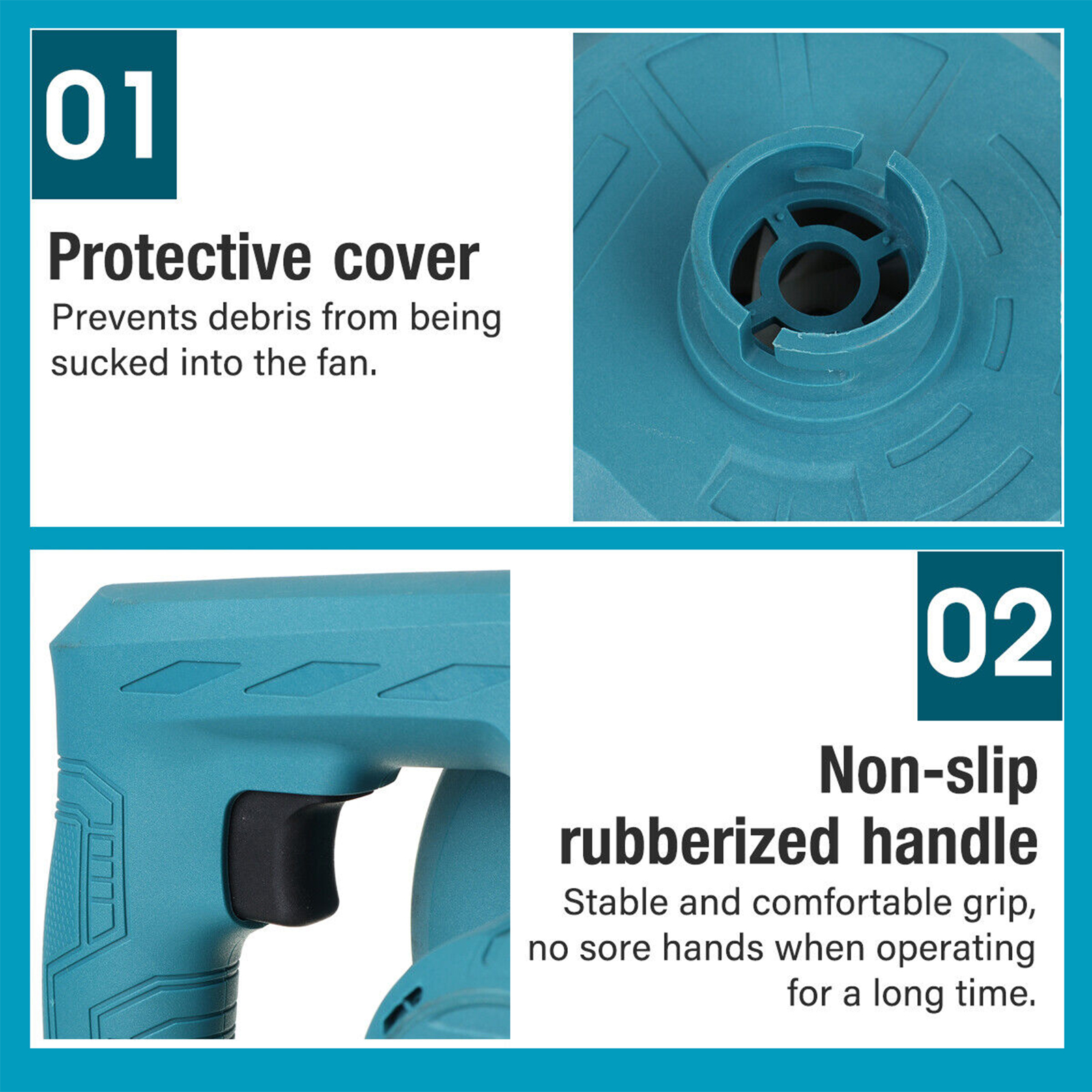8.Protection Design: No debris will be sucked into the fan due to the protective cover, so the fan can work durably.