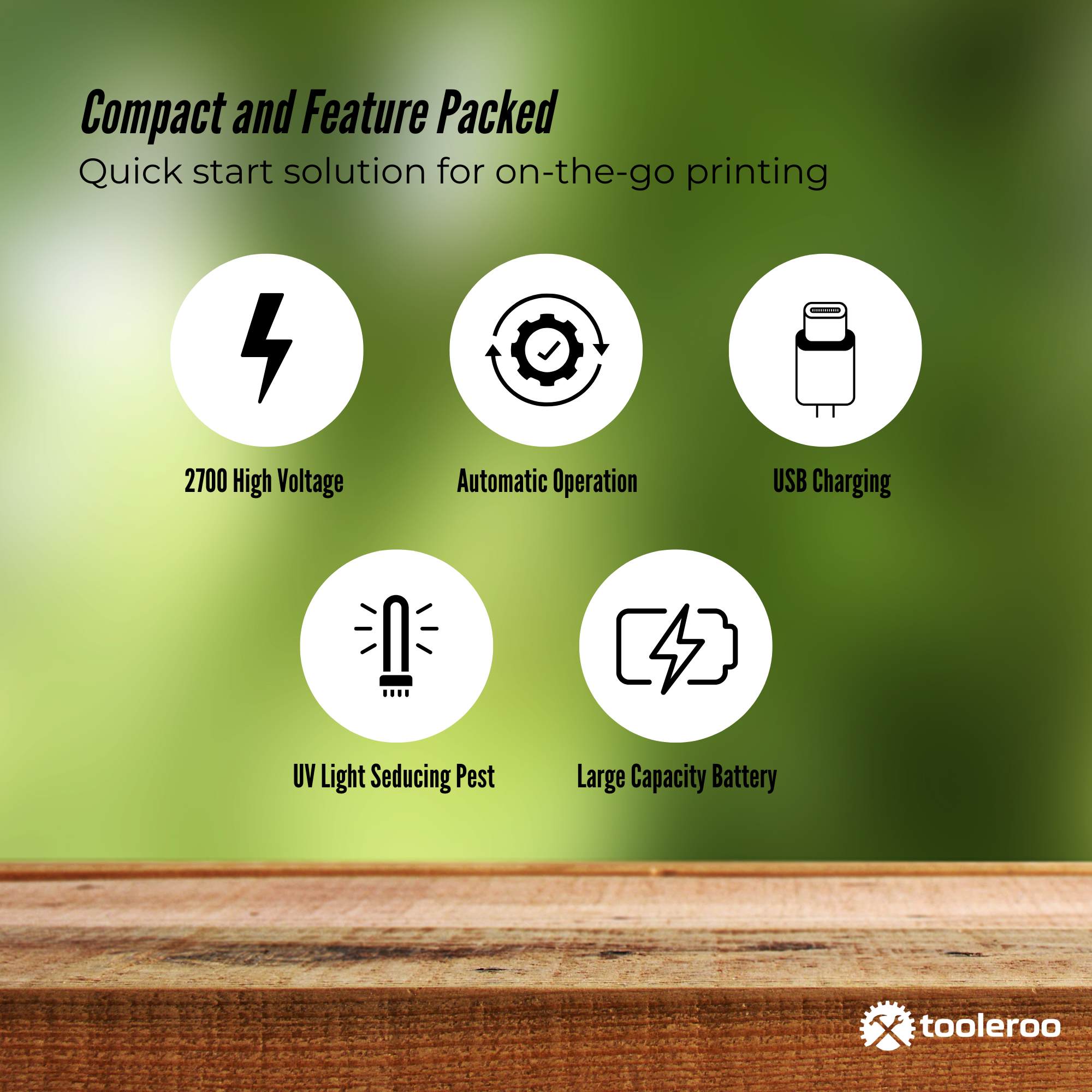 It is charged with the included mini-usb cable and has a large surface area that is used to zap the mosquitoes, flies and other flying insects alike.Â