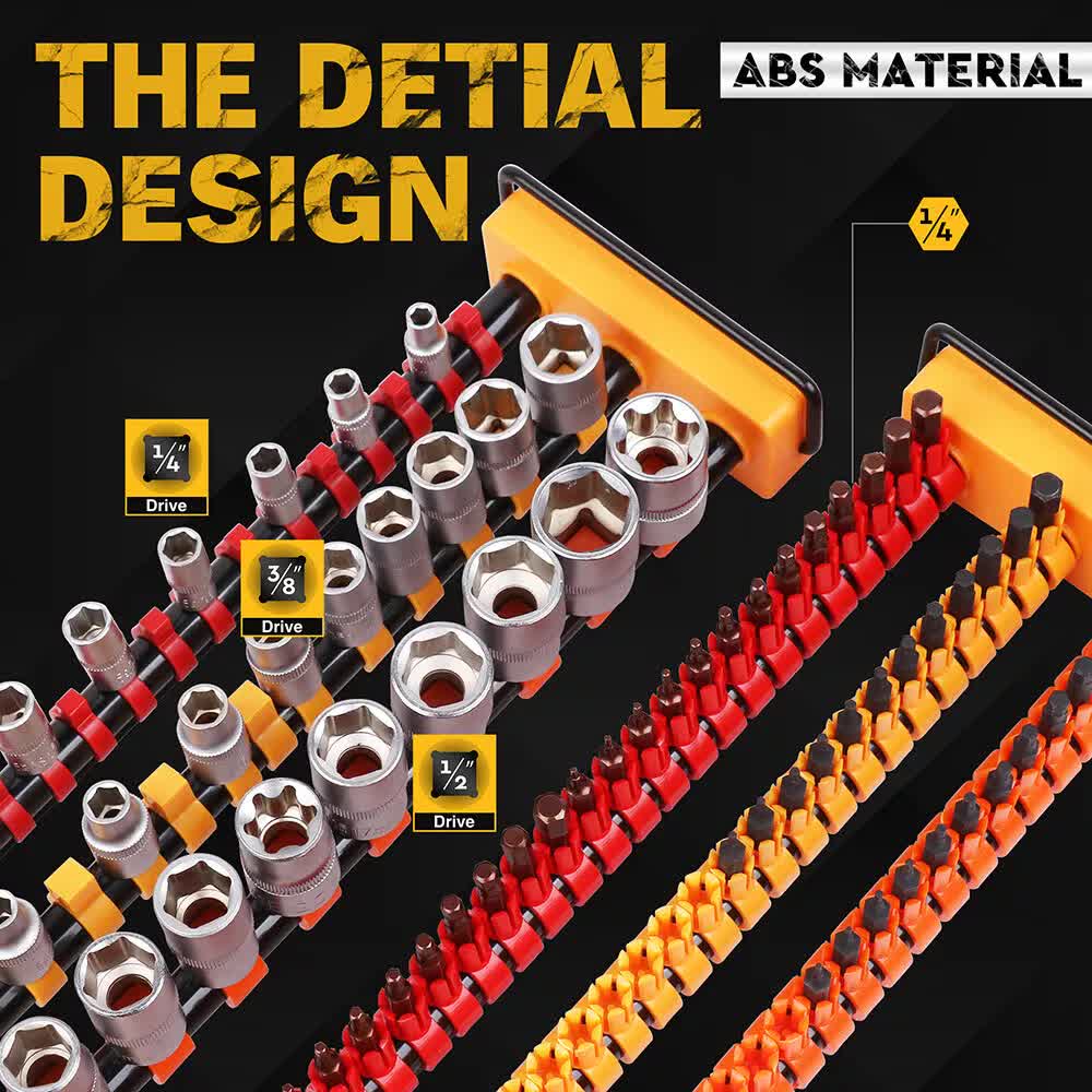 Spring-Loaded Clips:Equipped with spring-loaded ball bearings, each clip securely holds your sockets in place, preventing accidental falls or misplacement.