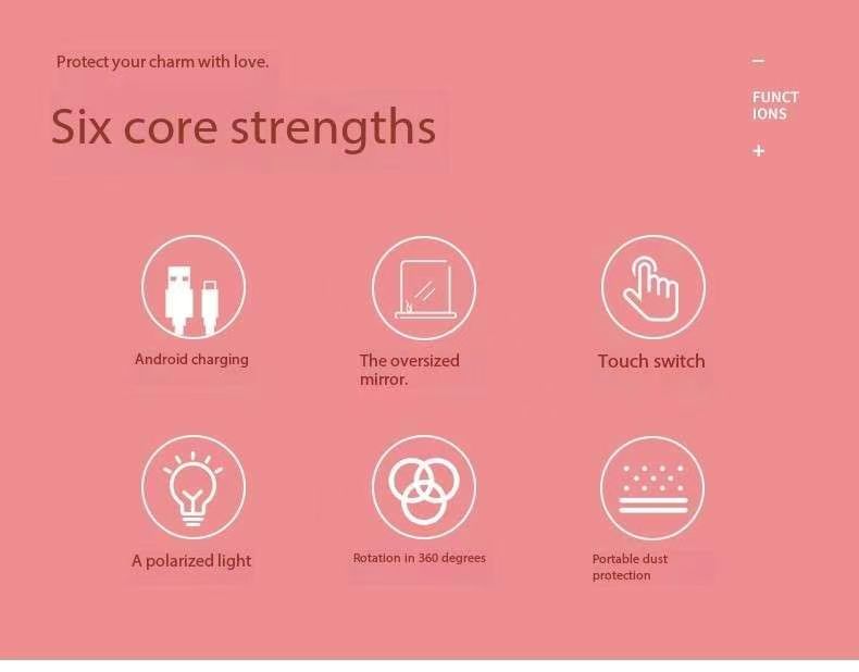With a touch switch, the mirror lights up instantly. The mirror surface can rotate freely by 360 degrees, allowing you to adjust it to any desired angle.
