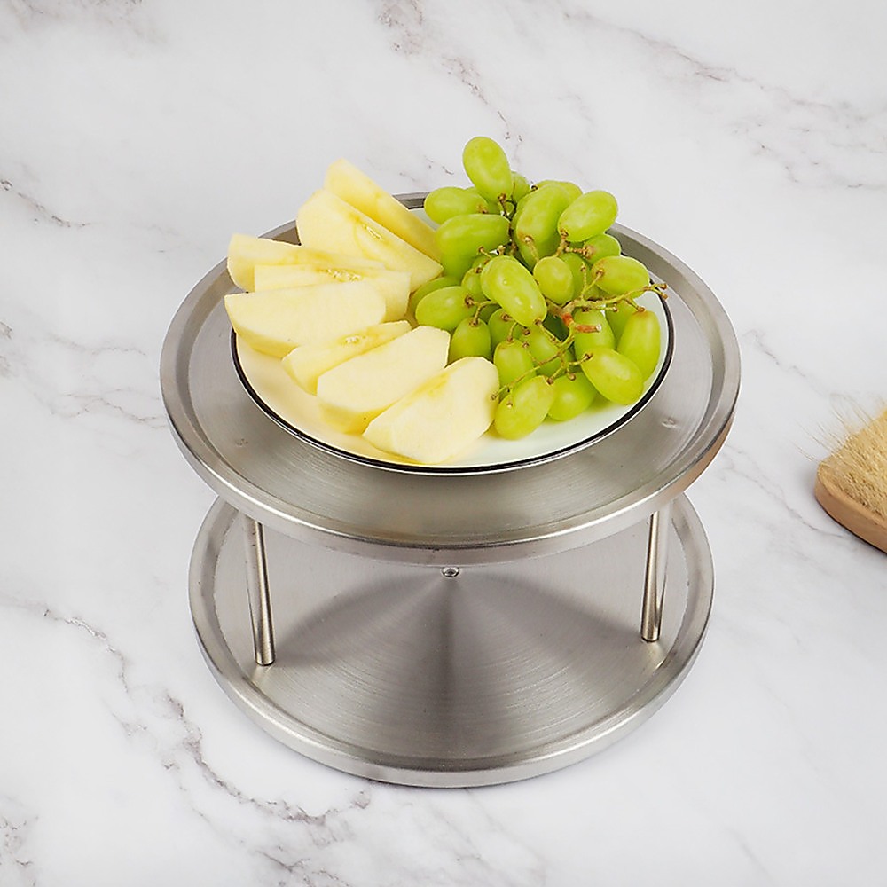 2-Tier Rack Lazy Susan Organiser Steel Kitchen Pantry Cabinet Storage