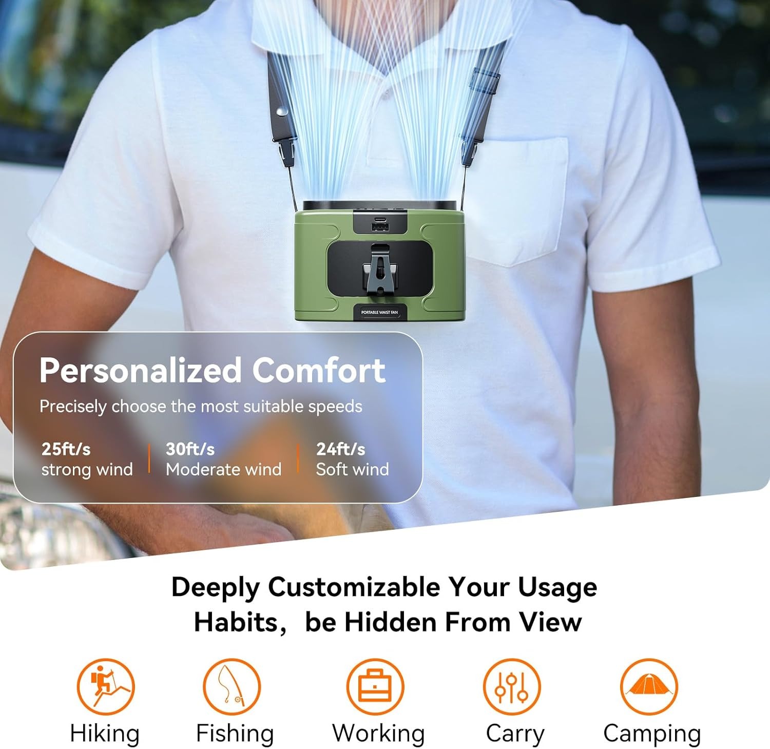 - 10 Powerful Speeds: This wearable fan is equipped with a powerful motor with up to 16000RPM and offers 10 adjustable wind speeds adjustment to get a more personalized airflow that effectively dissipates heat and dries sweat