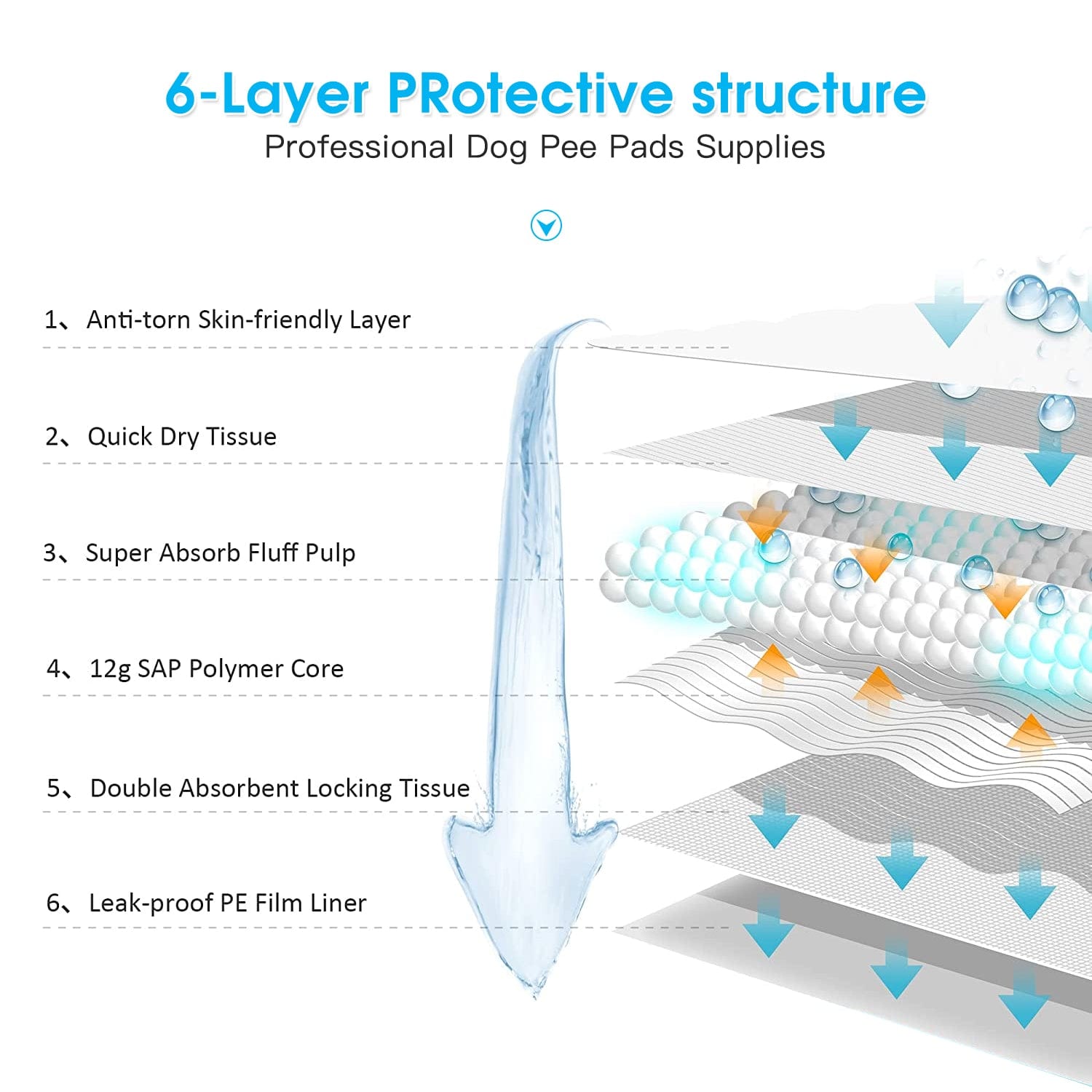 - Super Absorbent and Thicker –Â Thickened disposable pads for dogs and 6-layer protection design makes our Clevinger dog pee pee pads more absorbent than the most puppy potty pads on the market.