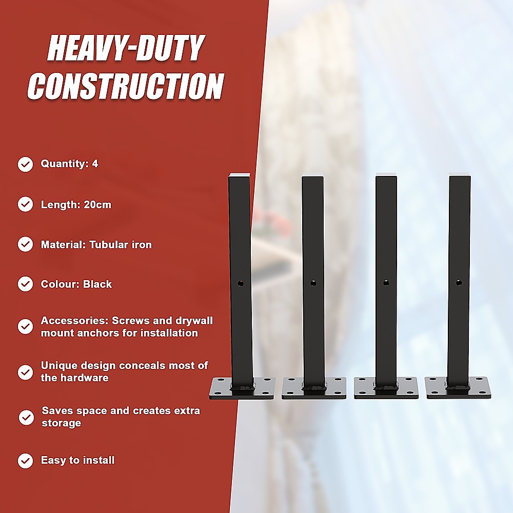 20cm Floating Shelf Brackets Industrial Metal Shelving Supports 4-Pack – Black