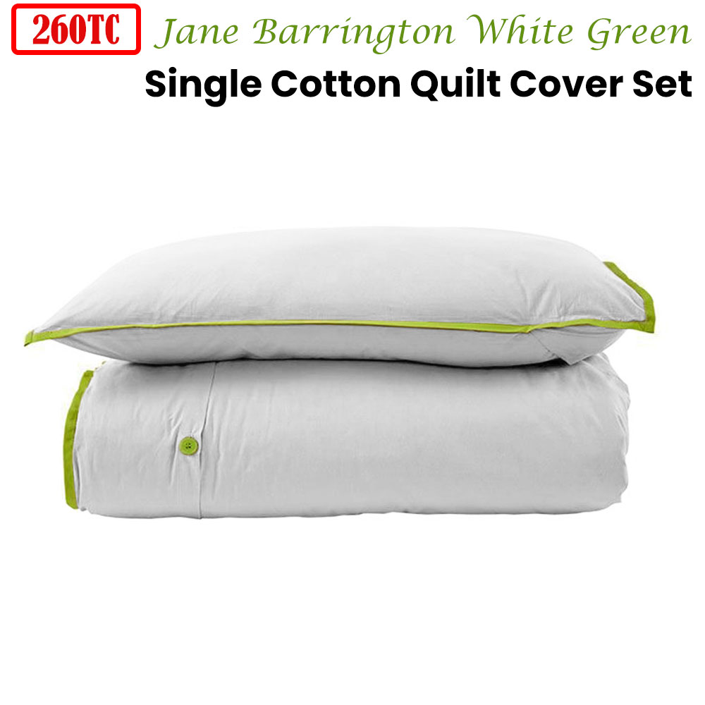 260TC 100% Cotton Quilt Cover Set Single White Green
