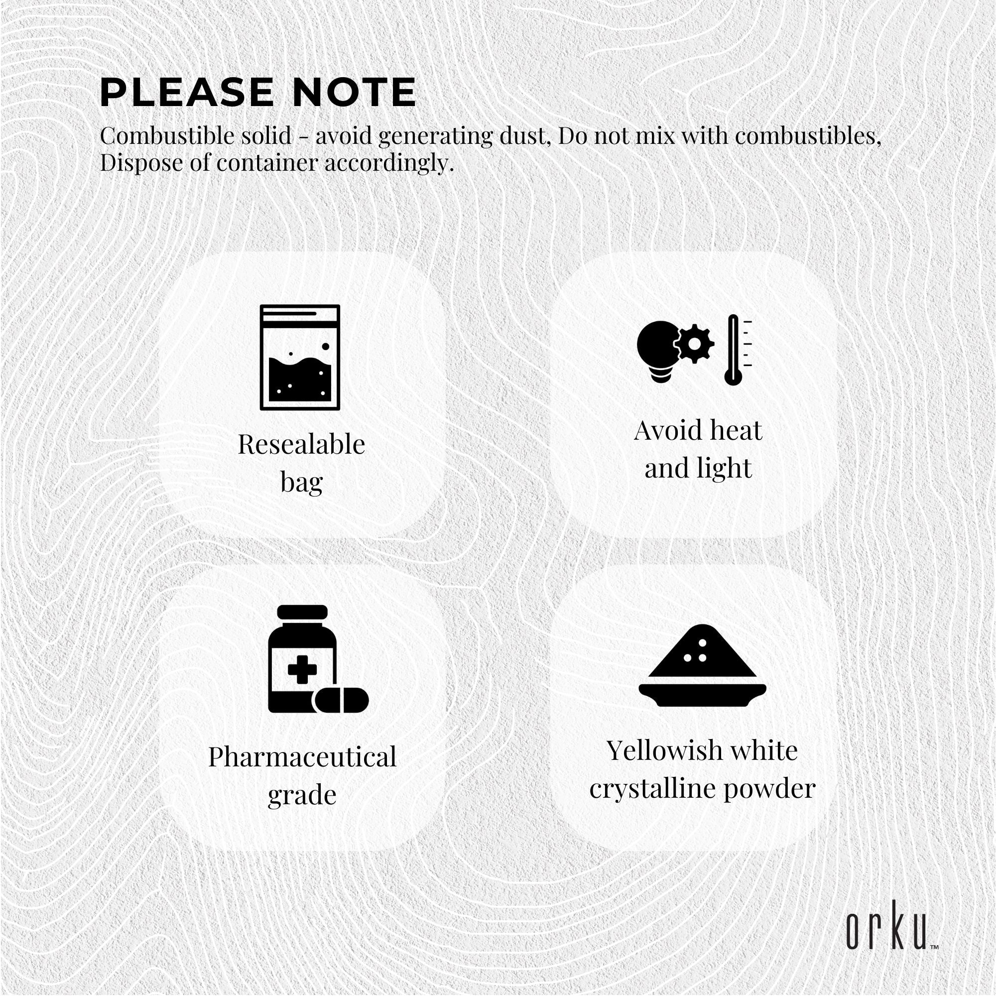 - Colour:Â Yellowish white crystalline powder