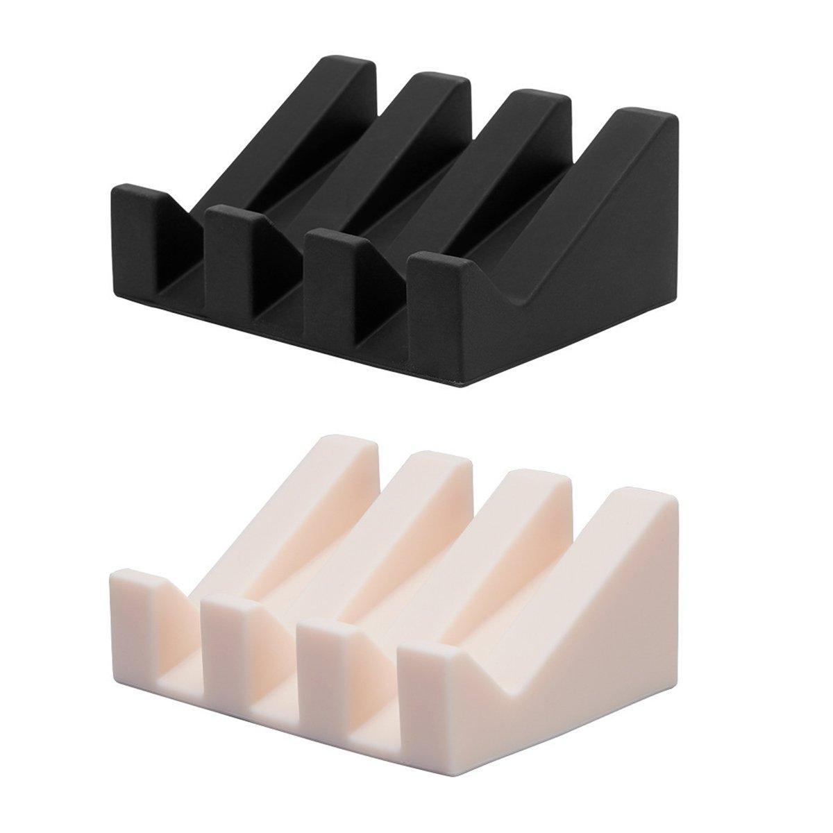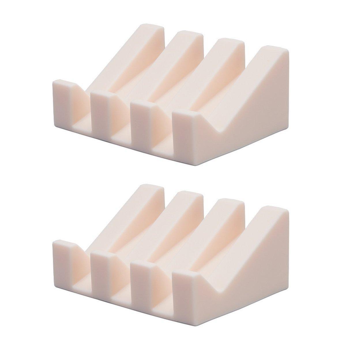 2PCS Silicone Soap Dish Holder Set Non-Slip Draining Soap Box Washable Pad Tray – White