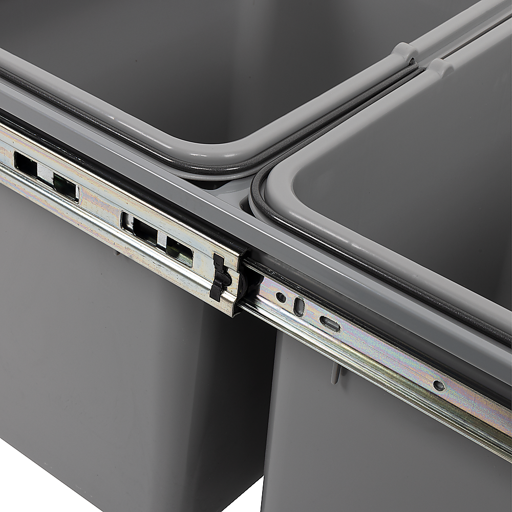 If you recycle (and who doesn't, these days?), you need this dual pull-out kitchen rubbish bin from Randy Travis Machinery. It fits right under your under-sink cabinet, keeping your rubbish disposal system out of sight. Crafted from durable, heavy-duty plastic and steel slide rails, this waste disposal system can stand up under years of heavy use. Simply close the removable lid after you dispose of your kitchen rubbish to prevent odour build-up. With a full capacity of 30 litres, it can easily hold all your daily kitchen rubbish, avoiding extra trips outside.