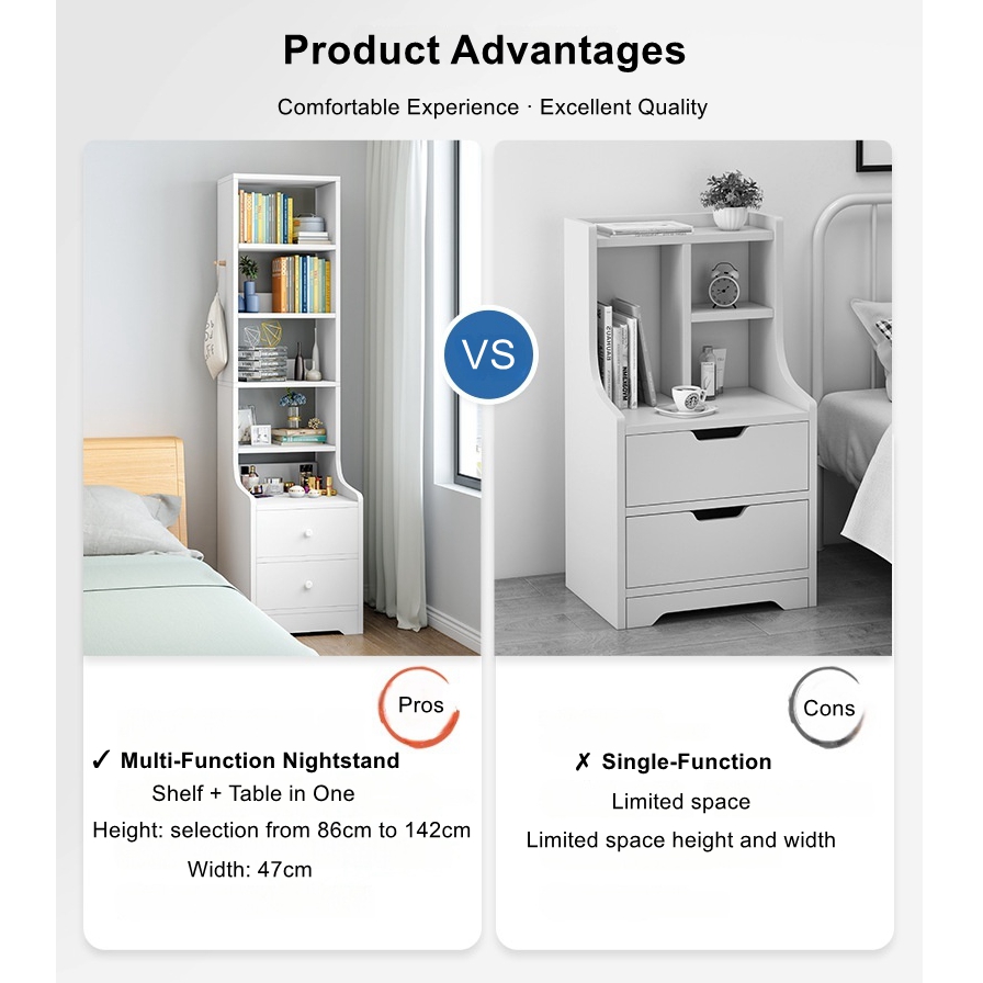 - 2 × Modern minimalist multi-functional bedside table (requires assembly)
