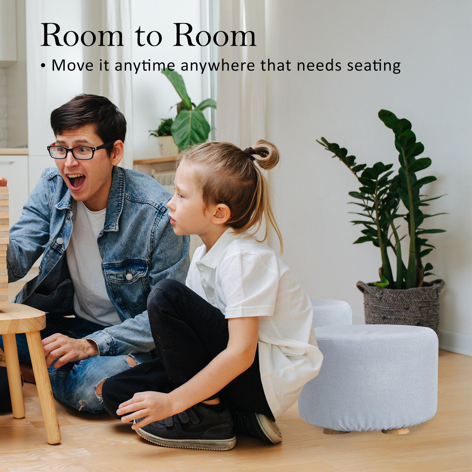 2X Fabric Ottoman Round Wooden Leg Foot Stool – LIGHT BLUE