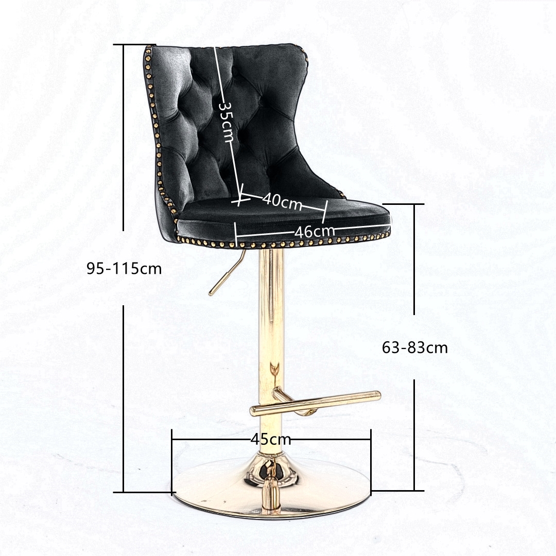 2x Height Adjustable Swivel Bar Stool Velvet Studs Barstool with Footrest and Golden Base- Black