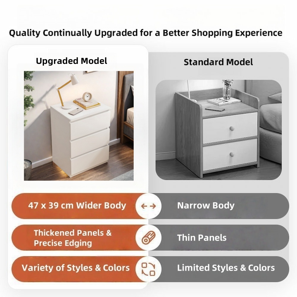 • 2 × Modern minimalist bedside table (requires assembly)