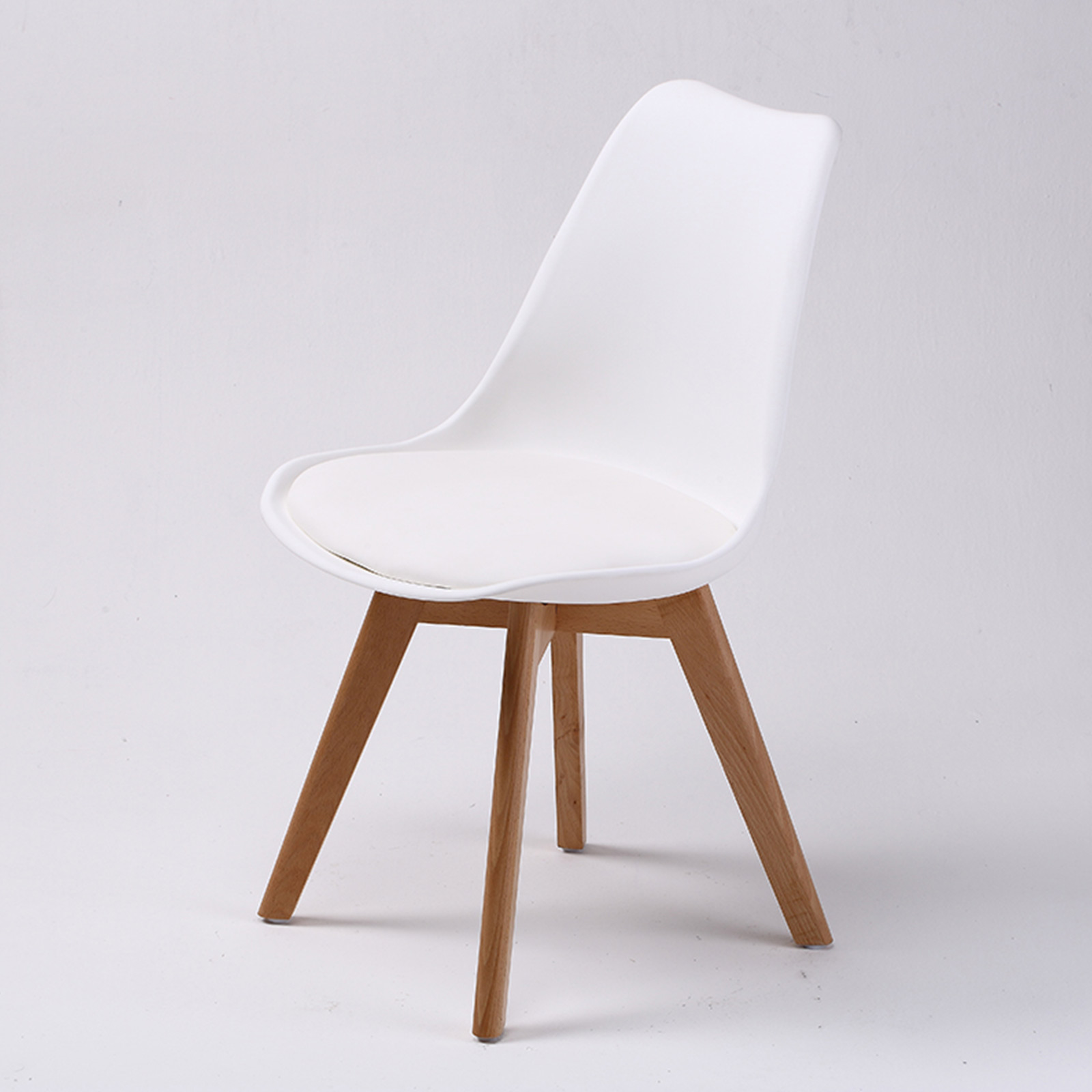 The chair seat is made of high-quality polypropylene plastic with an extra PU leather padded cushion, providing maximum durability and comfort without sacrificing its original aesthetic design. Besides, the beech wooden legs will add extra strength to the chair, giving it an extra stability.
