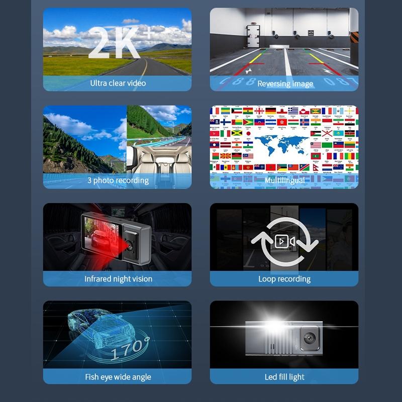 3-in-1 Car Dash Cam with Wifi 1080p Night Vision 3 Ips Screen 32gb – 32G
