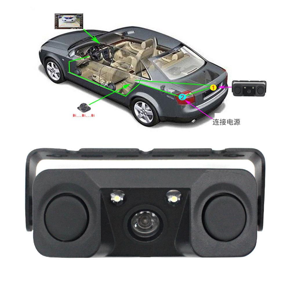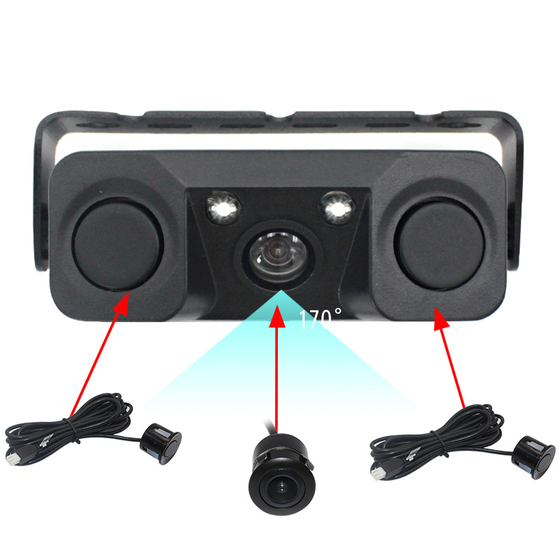• 3-in-1 Parking System: Integrates a rearview camera, two ultrasonic parking sensors, and an audible buzzer into a single unit.