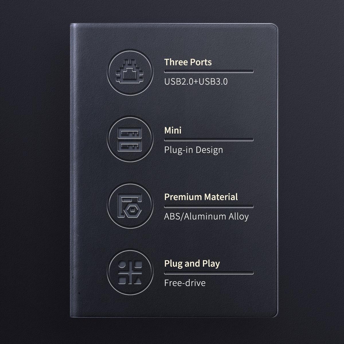 3-In-1 Usb Aluminum Mini Hub Adapter – Black