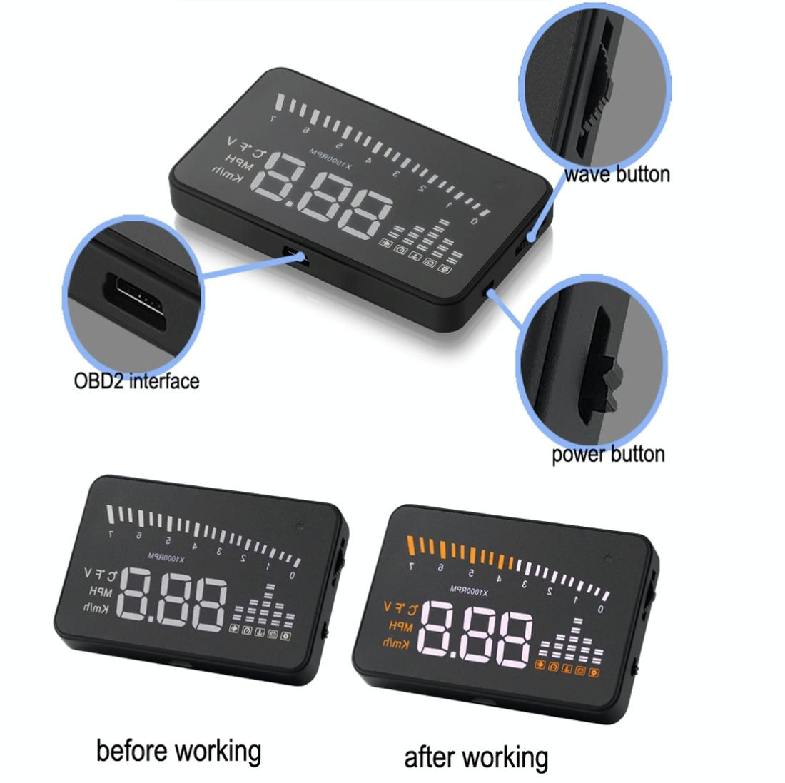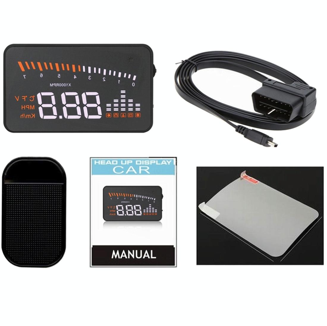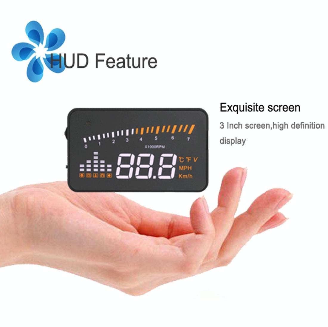 3 Inch Hud For Cars Obdii / Eobd System Light Sensors Rotation Speed Voltage Water Temp Alarm Black