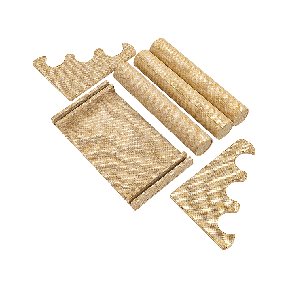The natural linen fabric provides a beautiful contrast to your jewelry items, enhancing their visual appeal. Ideal for trade shows and events, this display rack is lightweight and easy to transport. With 3 tiers, it offers ample space to display bracelets, necklaces, and other jewelry items. The matte finish adds a sophisticated look.