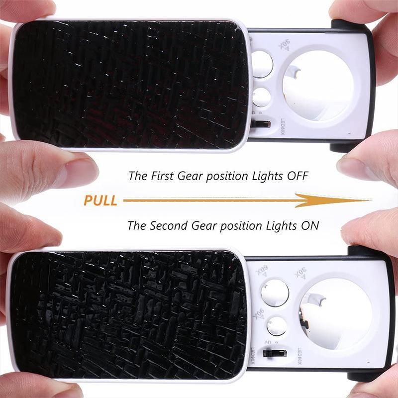 Optical lens with high definition can magnify every detail of jewelries, stamps, coins or others for better 30x magnified view is for viewing tiny characters, like fingerprints, 60x magnified view for printing grids or electronic component numbers and 90x magnified view for viewing flaws of jewelry.