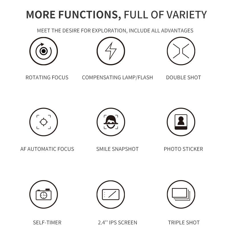 • Capture high-quality photos and videos with rotating focus and AF auto focus.