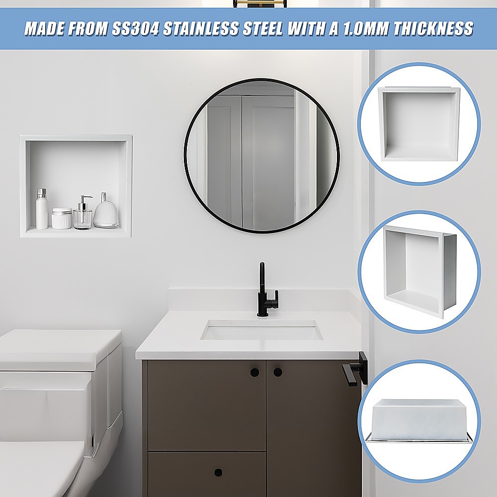 Upgrade your bathroom with this stylish and functional shower niche shelf. Enjoy the perfect blend of modern design and practical storage. Order yours today for an elegant addition to your bathroom space!