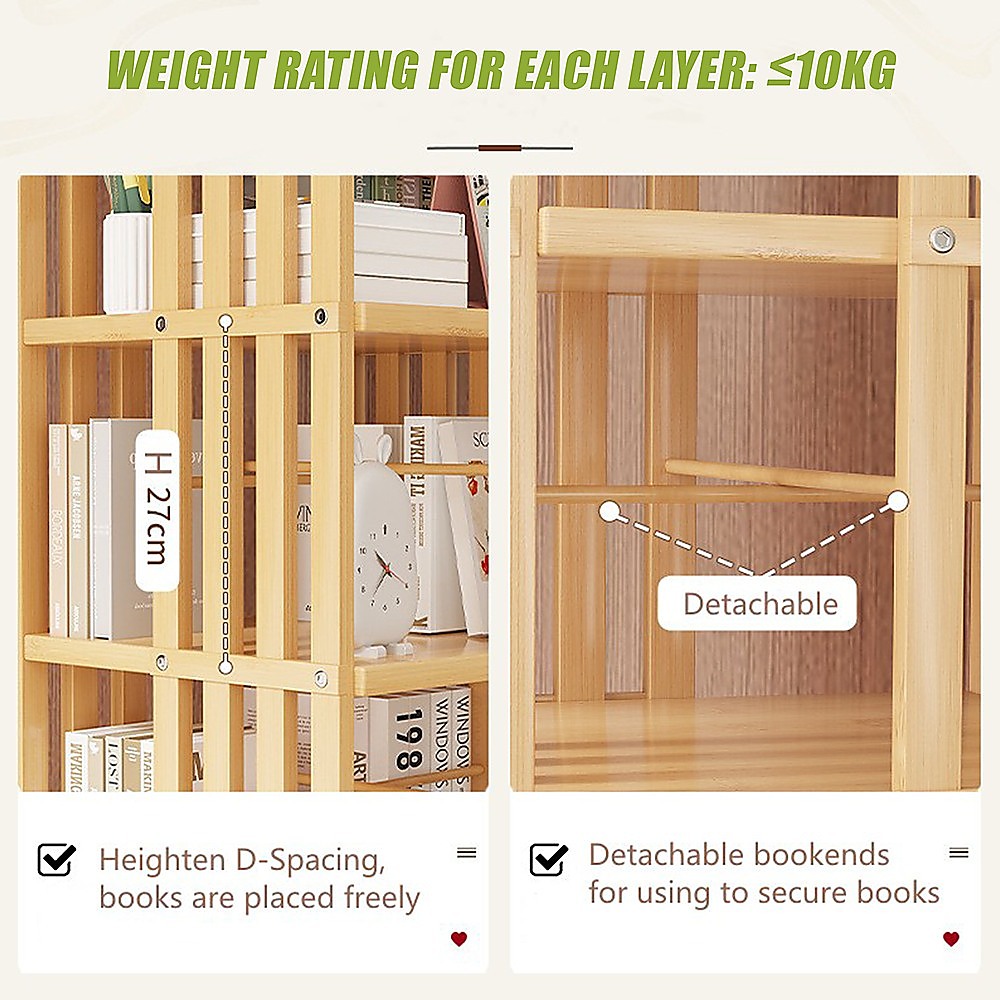 360 Rotating Bookshelf Bamboo Storage Display Rack Shelving in Wood