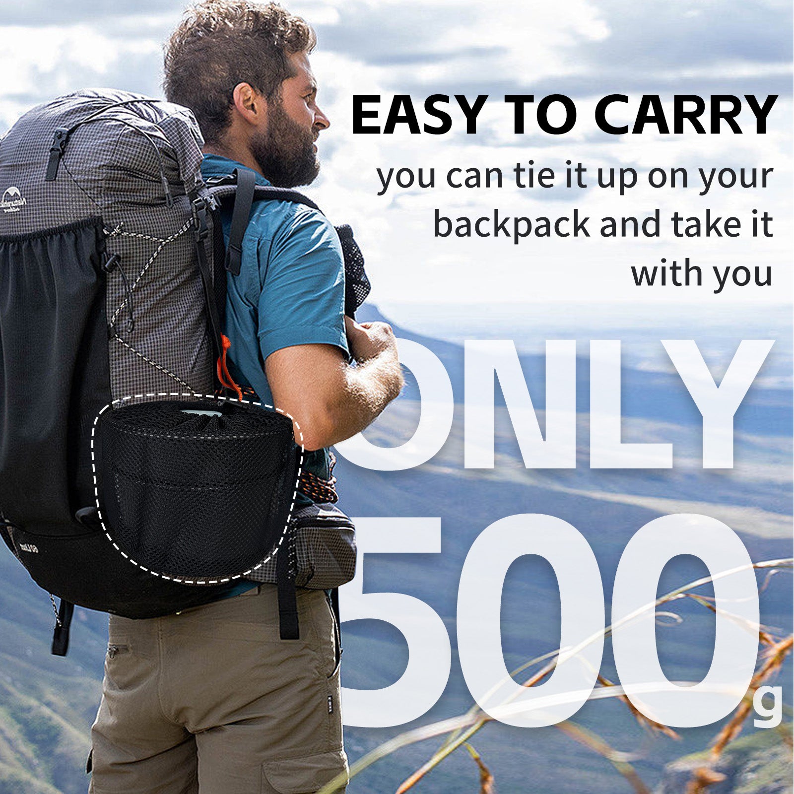 Compact & Portable – Weighs only about 500g, nests together, and stores in the included mesh bag.