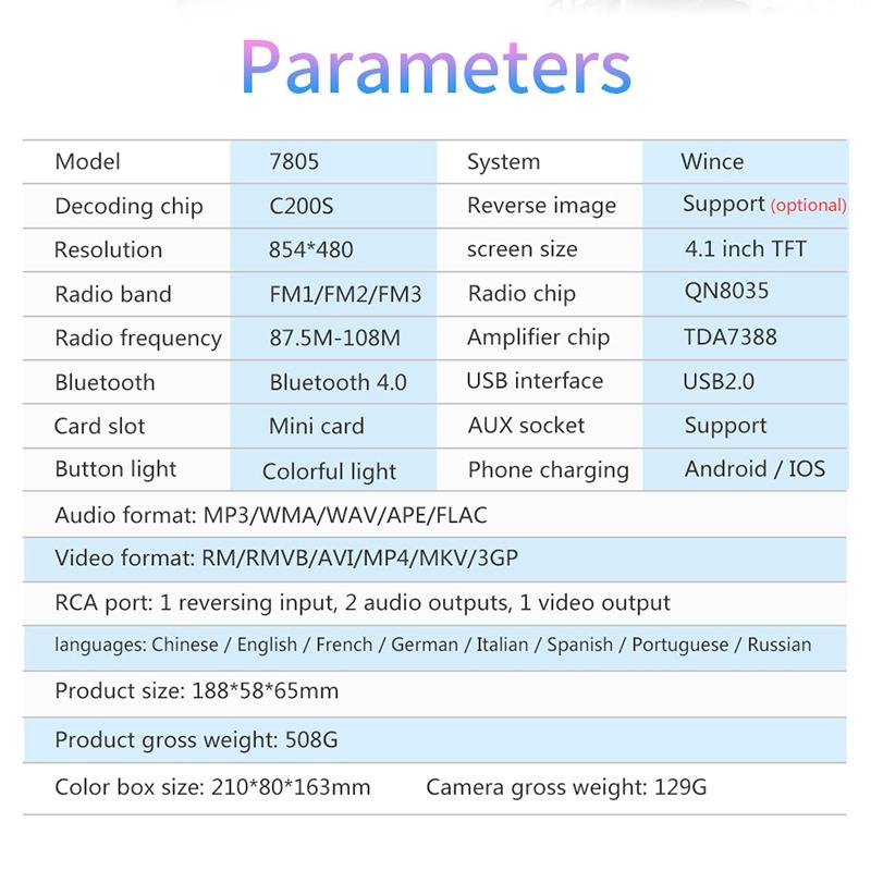• 1 x 4.1 Inch Car Mp5 Player W / Fm Bluetooth Tf Remote