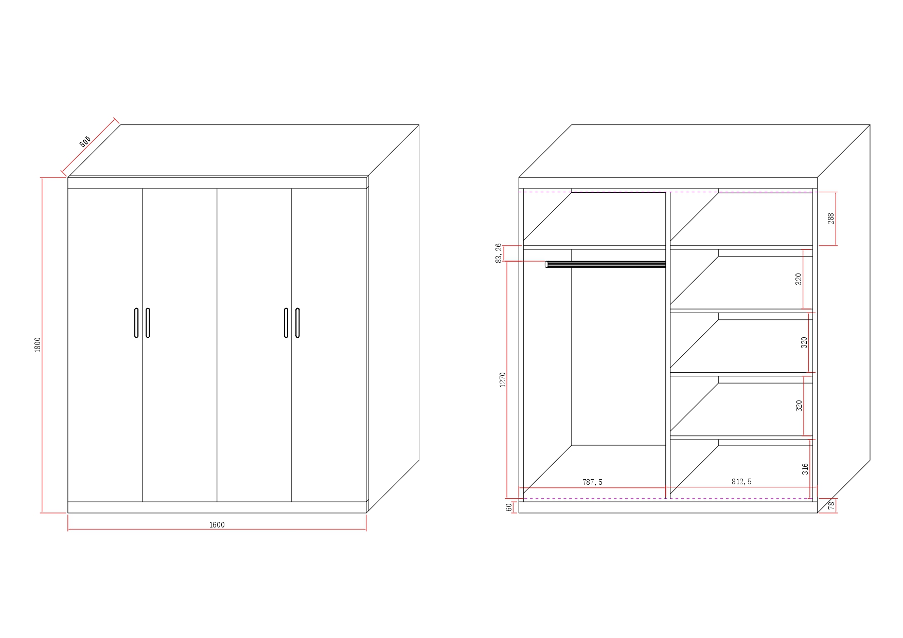 - 4-Door Wardrobe Perfect for modern bedrooms needing ample storage